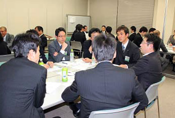 2012年4月19日与謝野町立生涯学習センター知遊館において、4月例会並びに4月事業を開催しました。4月例会では、新入会員のバッジ授与の他、公益社団法人日本青年会議所近畿地区京都ブロック協議会の各委員会等から事業のPRがありました。また、4月事業では、「まちづくり寺子屋」〜数字で見るわがまち〜をテーマに、自分たちのまちの現状を理解し、当事者意識を持つことを目的とした事業を開催しました。宮津市と与謝野町の職員さんによる自分たちのまちの現状を説明していただいたあと、 グループに分かれ、人口推計や財政状況を鑑み、この先の地域の将来について幅広くディスカッションをしました。その中では、人口減少に歯止めをかけるために単身者に課税をといった意見も出て、若者ならではの発想で意識を共有しあえました。